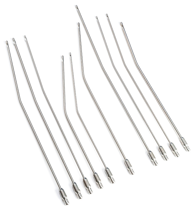 Cânulas especialmente desenhadas para abordagem em diferentes ângulos na lipoaspiração em alta definição.